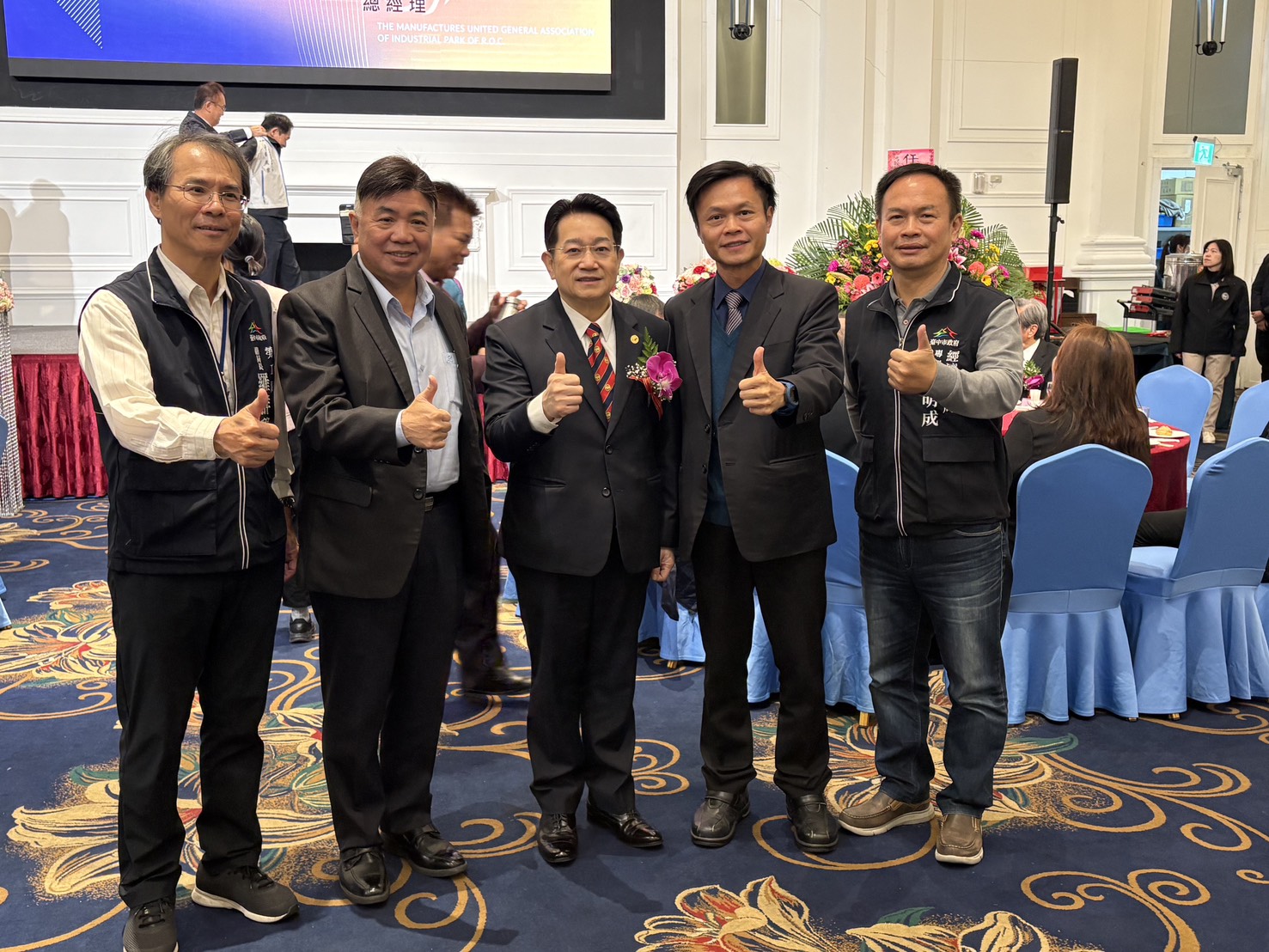 今日典禮貴賓雲集,包括立法院副院長江啟臣、市議員黃佳恬、台中市政府副秘書長林育鴻、消防局長孫福佑、勞工局副局長羅群穆、經發局專門委員龍明成、經濟部產業園區管理局副局長劉繼傳、台中分局長陳高尚,以及中華民國工業區廠商聯合總會總會長許正雲、副總會長董正宗、魏雅庵等產業界代表出席,共同見證會長交接的重要時刻。